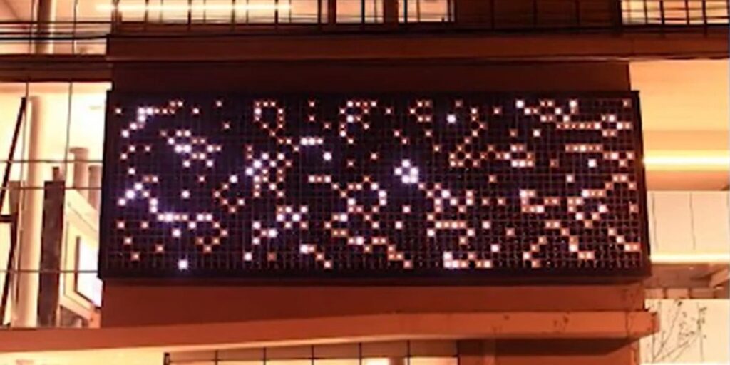 O grande diferencial deste projeto revela-se, também, ao anoitecer. Pelo lado de dentro do prédio corporativo, foram instalados spots de luz estrategicamente posicionados. Quando acesos, a luz transpassa os elementos vazados dos cobogós, fazendo com que a fachada brilhe e criando um efeito visual que remete diretamente a um céu estrelado.