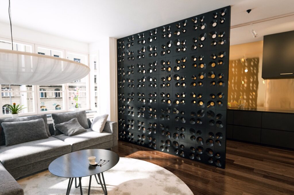 Construir uma parede de alvenaria no meio da sala pode deixar o ambiente escuro e com a sensação de confinamento, especialmente em apartamentos mais compactos. As divisórias vazadas resolvem esse problema com elegância.